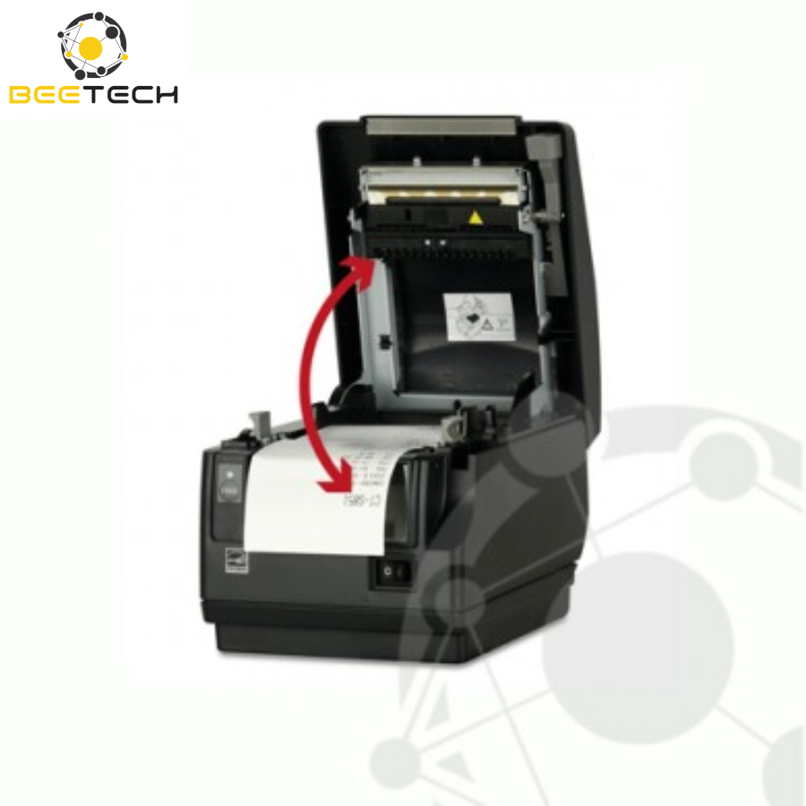 Thiết kế độc đáo với cổng ra hóa đơn ở phía mặt trước giúp máy in phù hợp cho các môi trường làm việc hạn chế không gian hoặc cần bảo vệ hóa đơn khỏi bụi bẩn và nước.